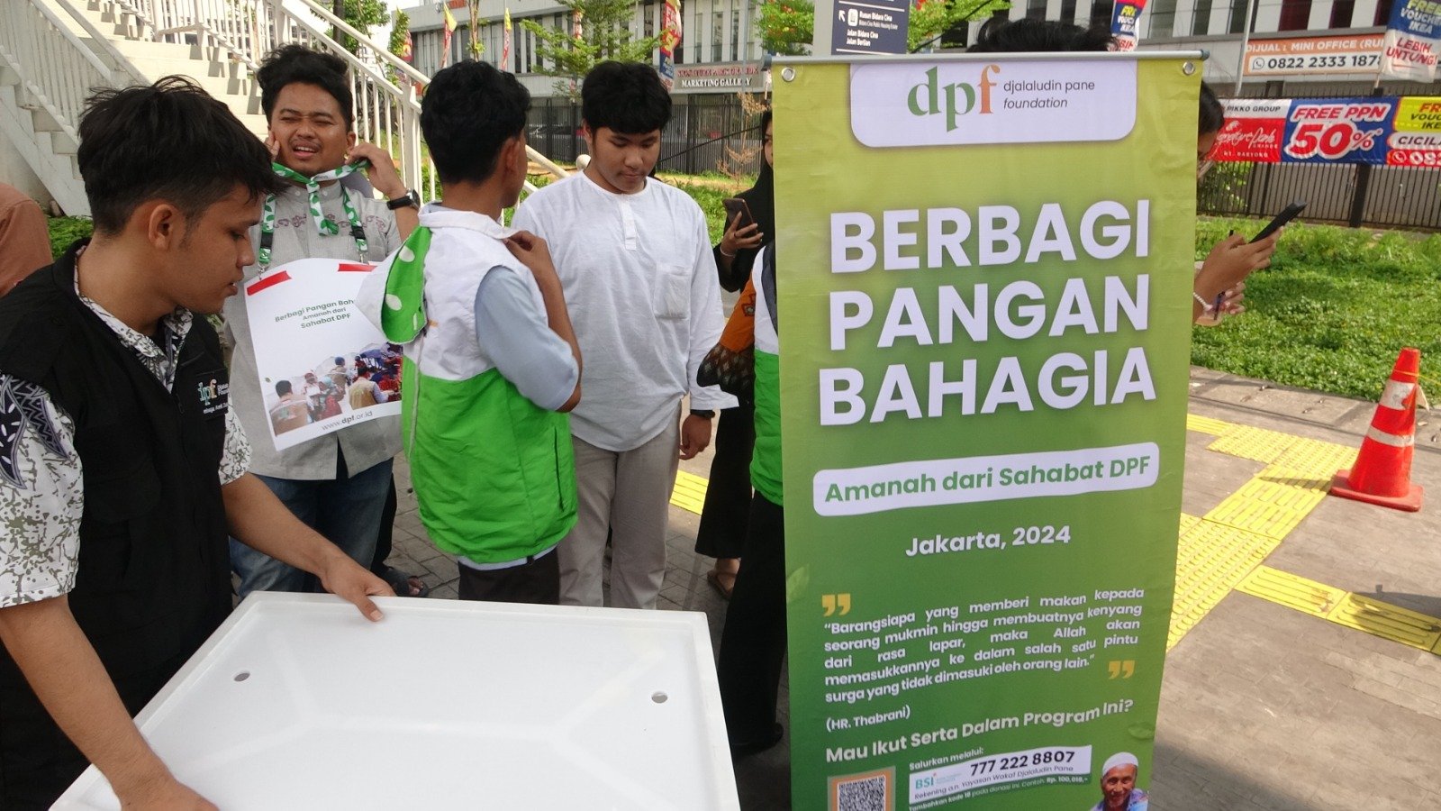 Untuk melaksanakan kegiatan ini, tim dari DPF memasang sebuah mini stand di pinggir jalan, tepat di depan pintu masuk Signature Park Grande. Lokasi yang strategis ini dipilih agar mudah diakses oleh pengendara maupun pejalan kaki yang melintasi area tersebut.
